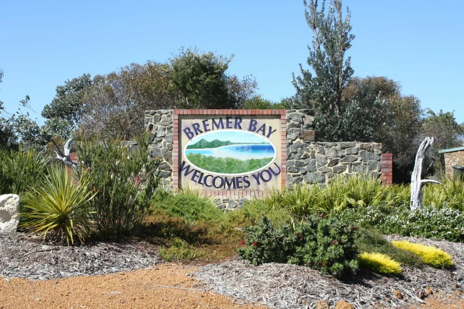 As you slow into the beautiful town of Bremer Bay there will be a bricked welcome sign with a rustic yet charming look. There are native plants around it that look incredible all year round, picture perfect.